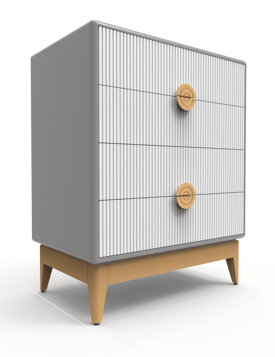 В этой серии мебельных рифленых фасадов применяется аккуратная декоративная фрезеровка, выполненная концевыми фрезами на глубину 4 мм.